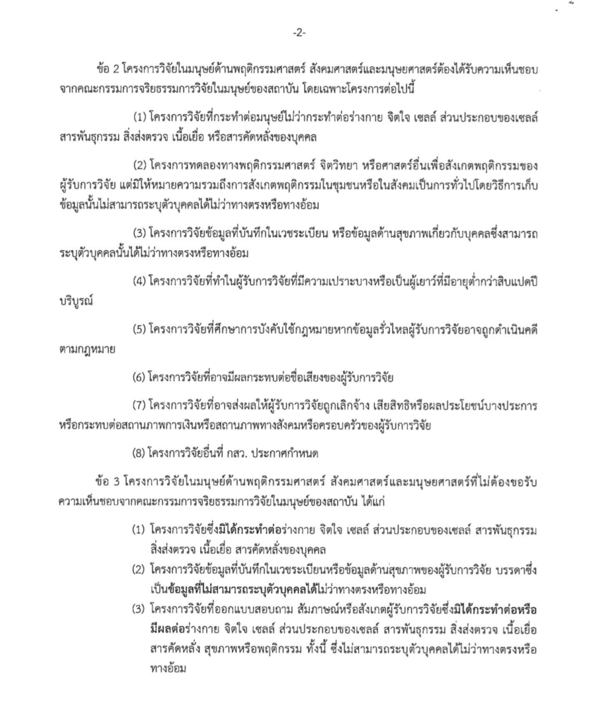 2. โครงการวิจัยที่ต้องได้รับการพิจารณาเห็นชอบจากคณะกรรมการจริยธรรมการวิจัยในมนุษย์